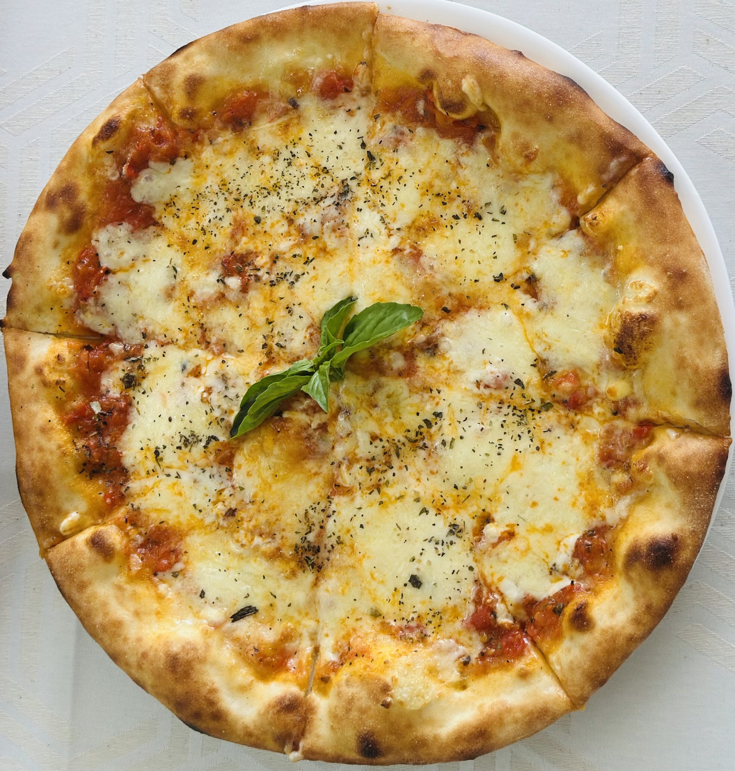 Sauce tomate fraîche, mozzarella fondante, huile d’olive vierge extra